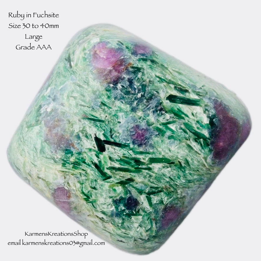Ruby in Fuchsite has varying shades, patterns and inclusions. Note, Natural stones differ in shape.